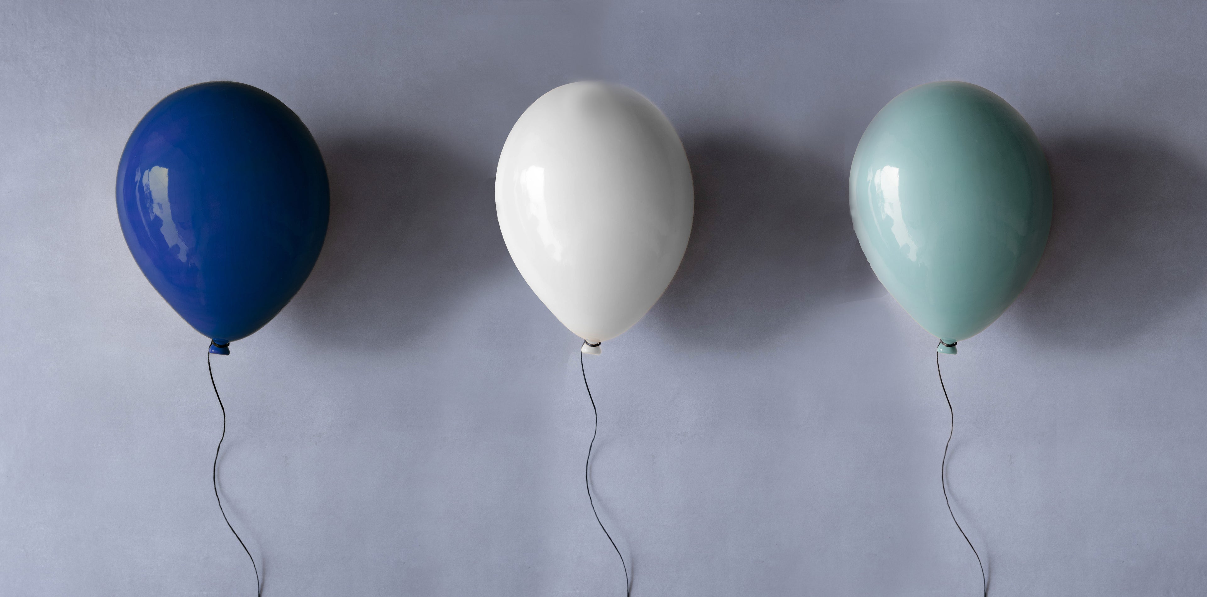 The ceramic balloons and popsicles are designed for wall installations and you can hang them anywhere in your home or office. For safety reasons do not hang the ceramic balloons and other ceramic artworks above a crib, a bed or a couch.