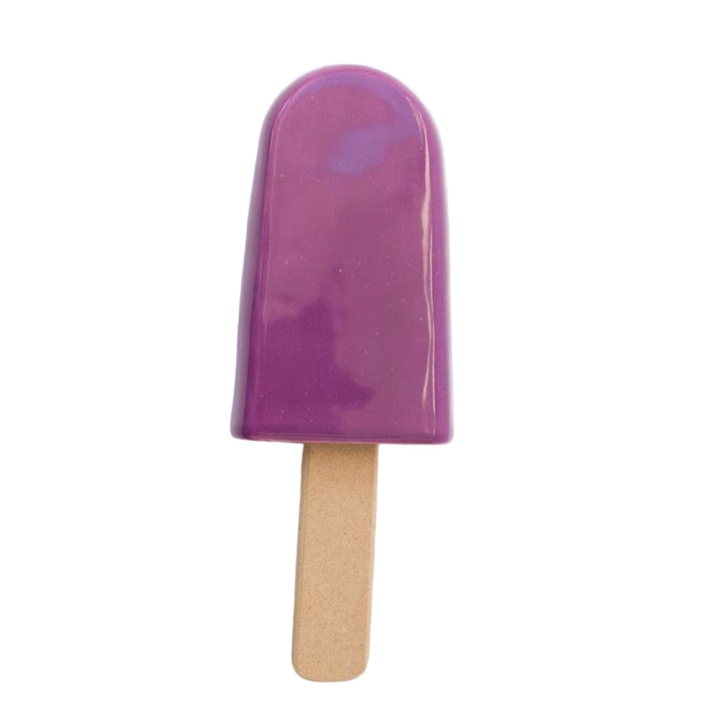 Elevate your space with our stylish purple popsicle sculpture. Crafted from clay and coated with a glossy non-toxic glaze, this playful art piece adds a unique charm to any room. Its vivid color brings sophistication and cheer, whether in your living room, bedroom, nursery, or office.